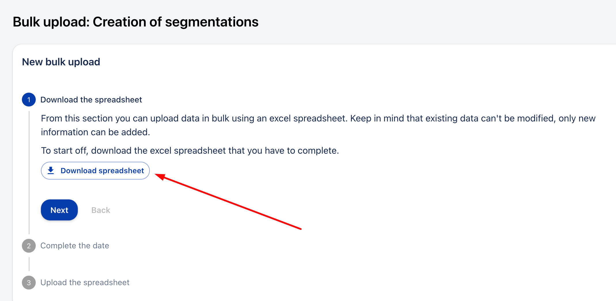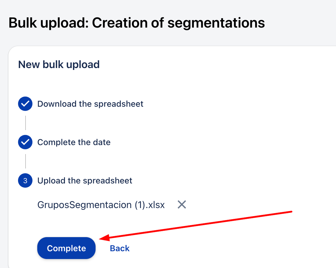 За да извършите масово качване на сегментации, трябва да следвате тези стъпки: