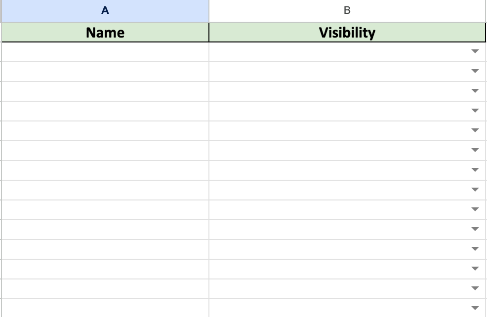 5. Когато попълвате електронната таблица, трябва да зададете "Име" и "Видимост" на сегментацията.