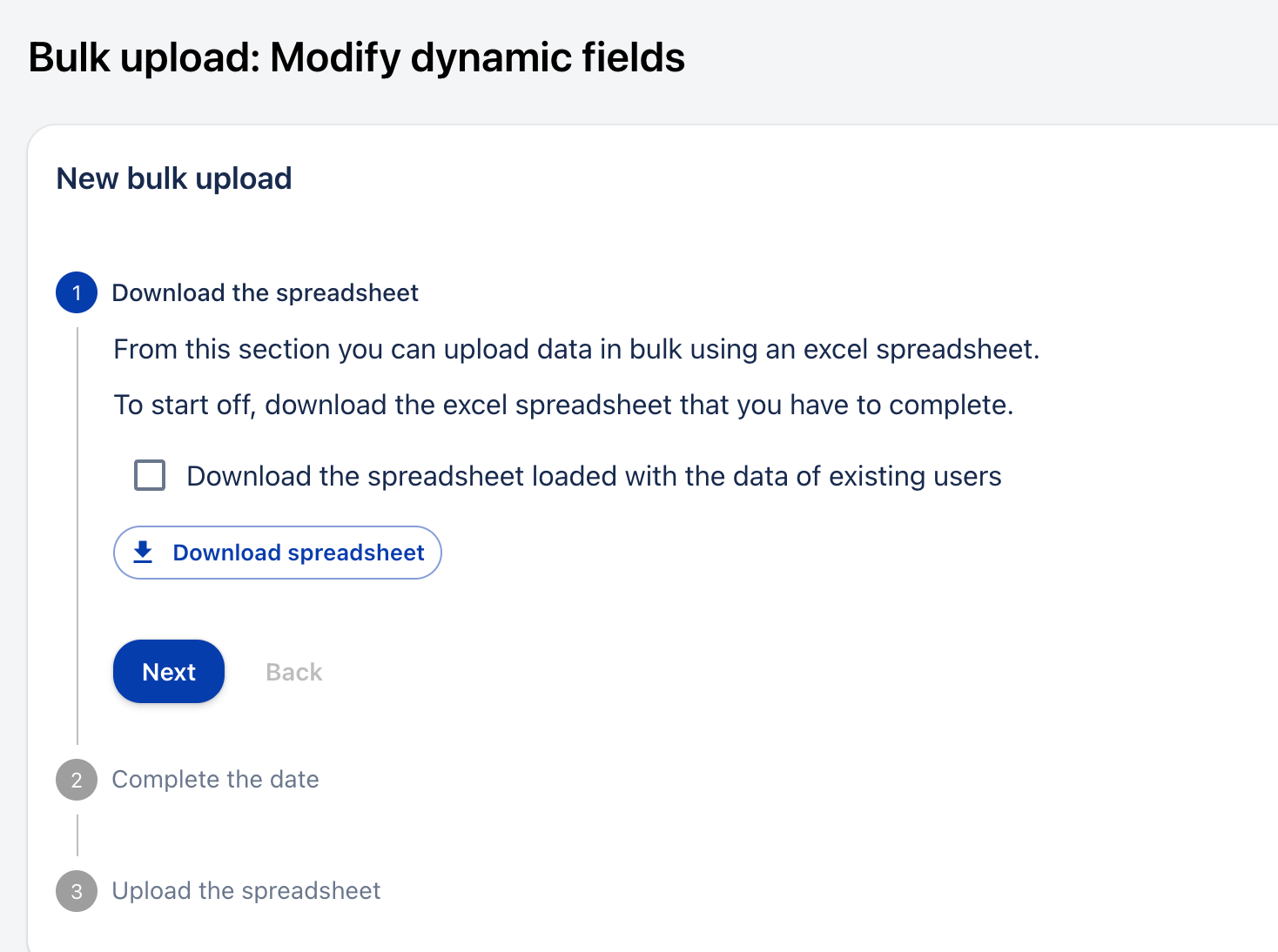 За да извършите масово качване на динамични полета, трябва да следвате тези стъпки: