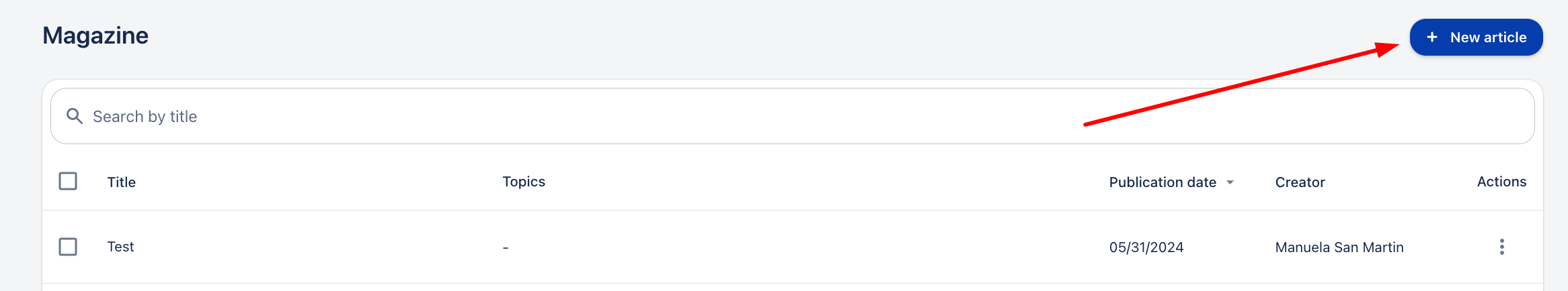 3. Кликнете върху „+ Нова статия“.