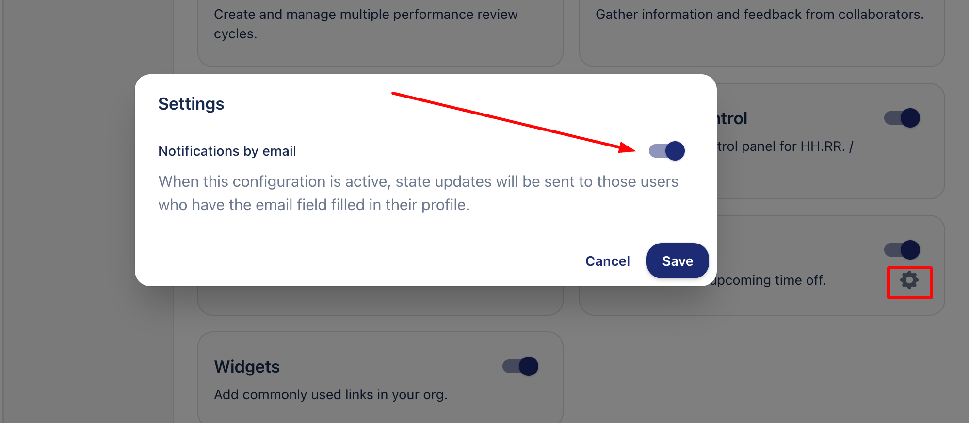 Същевременно, от иконата ⚙️, можете да активирате известия по имейл, така че потребителите, които са посочили своя имейл адрес, да получават актуализации за състоянието: