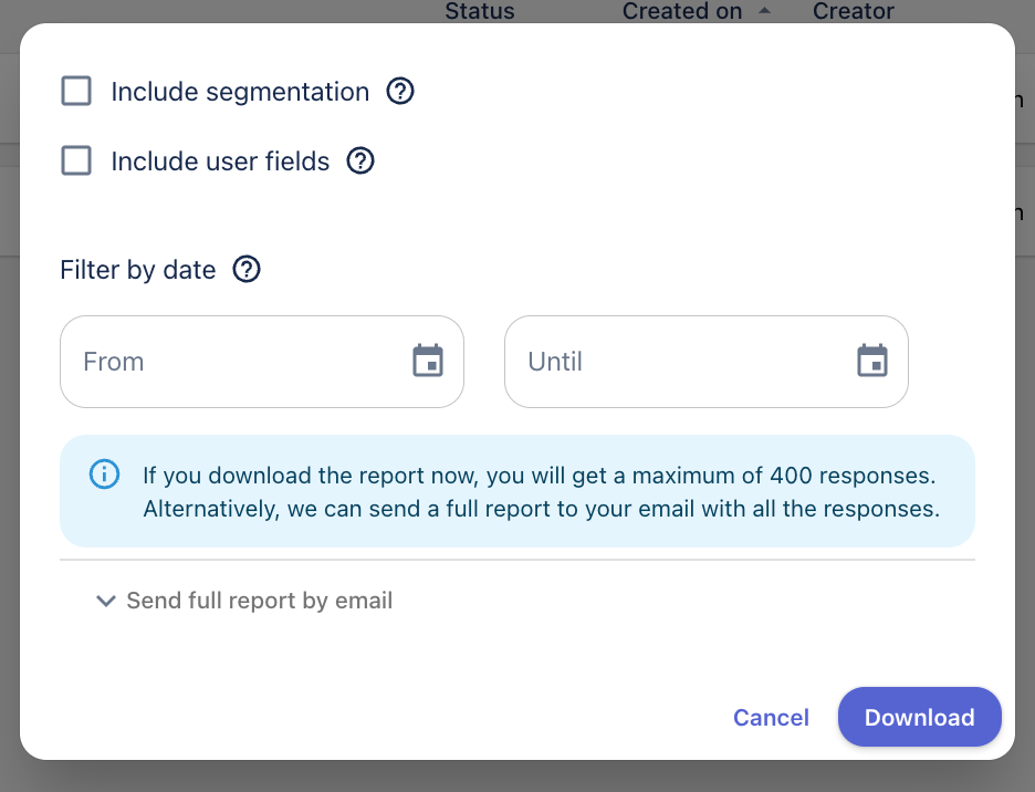 Изтеглете отчет, филтриран по дата на отговора и добавете информация към отчета:
