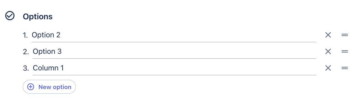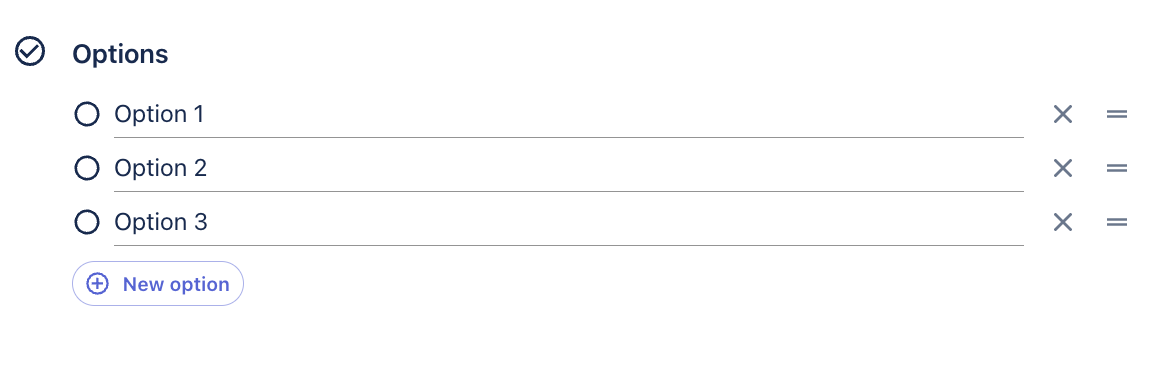 Опции (уникален избор): сътрудникът може да избере само една от конфигурираните опции.