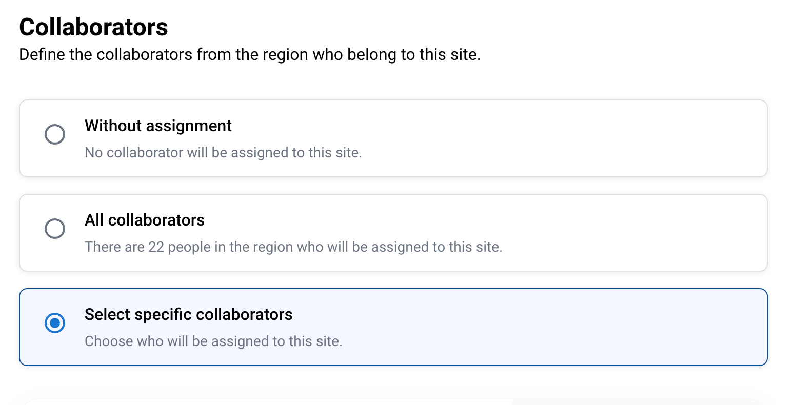 • Накрая, присвоете на новия сайт потребителите, които ще бъдат част от него. Можете да ги добавите, като търсите индивидуално всеки сътрудник или като използвате сегментациите, създадени във вашата общност (филтри).