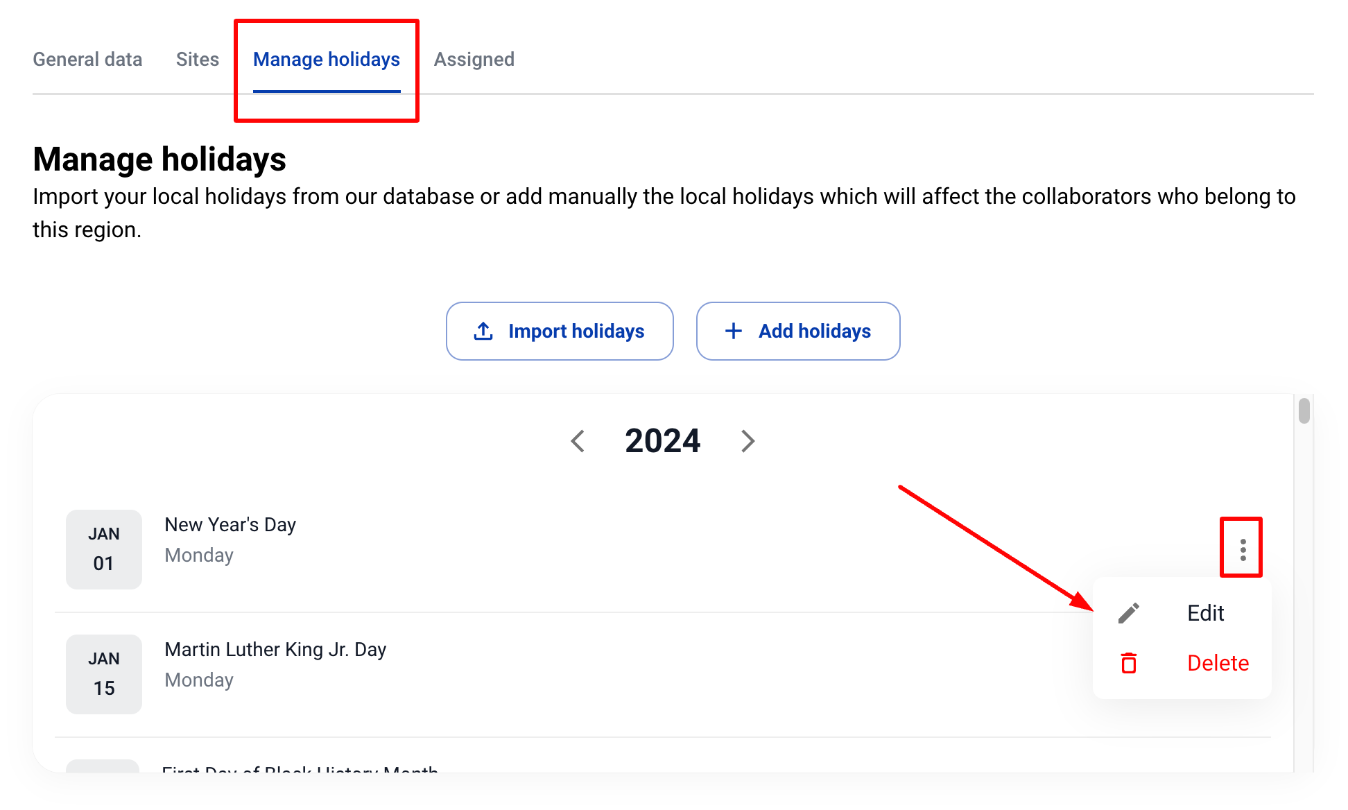 - Добавяте празници ръчно или чрез импортиране от нашата база данни.