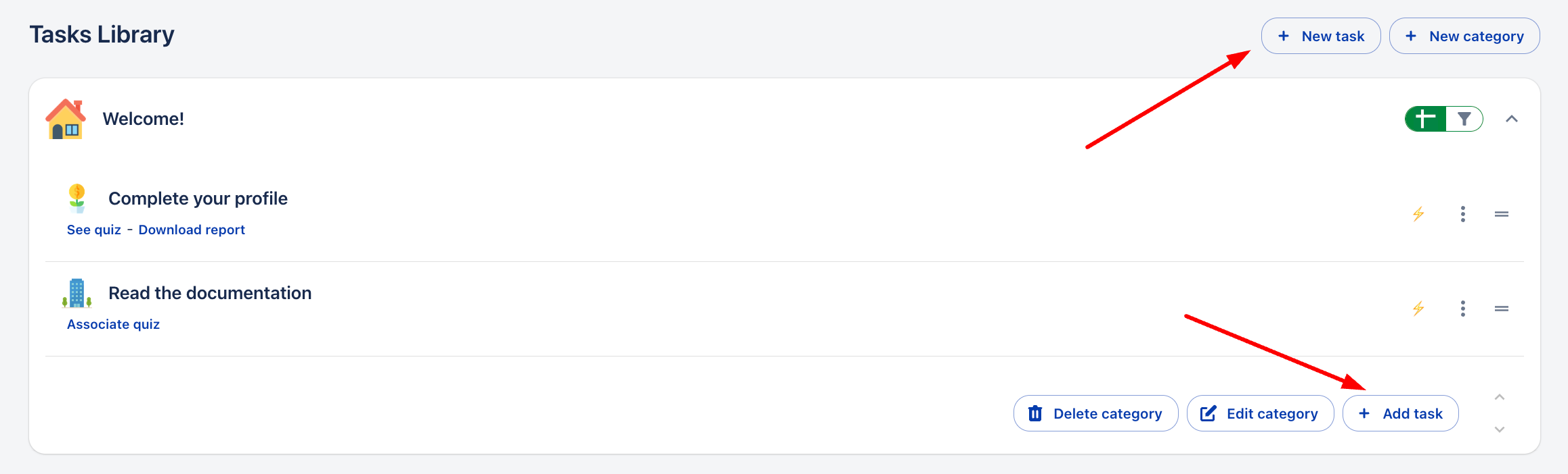 Имате два начина да създадете задача, чрез бутона „Нова задача“ или като добавите нова задача в категория.