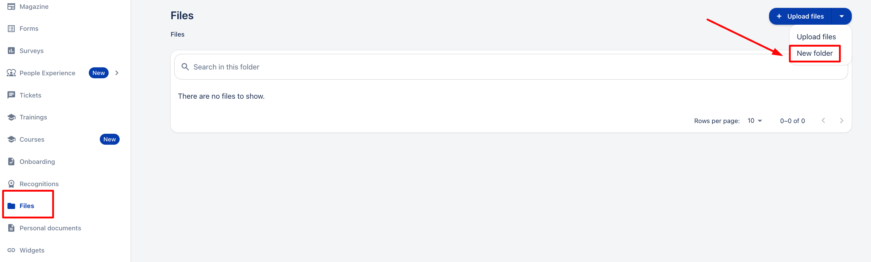 За да направите това, в секцията „Файлове“ кликнете върху „Нова папка“.