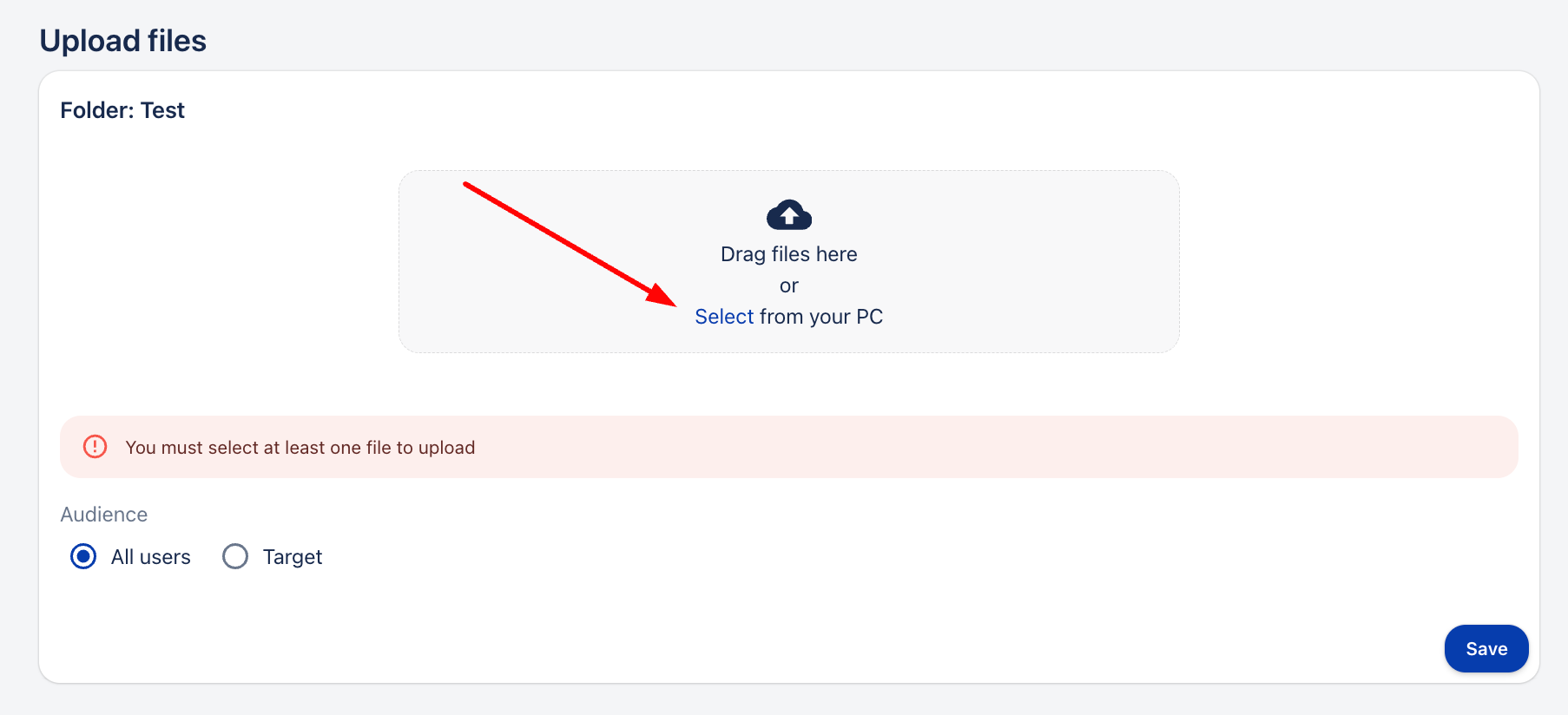 Кликнете върху „Качване на файлове“.