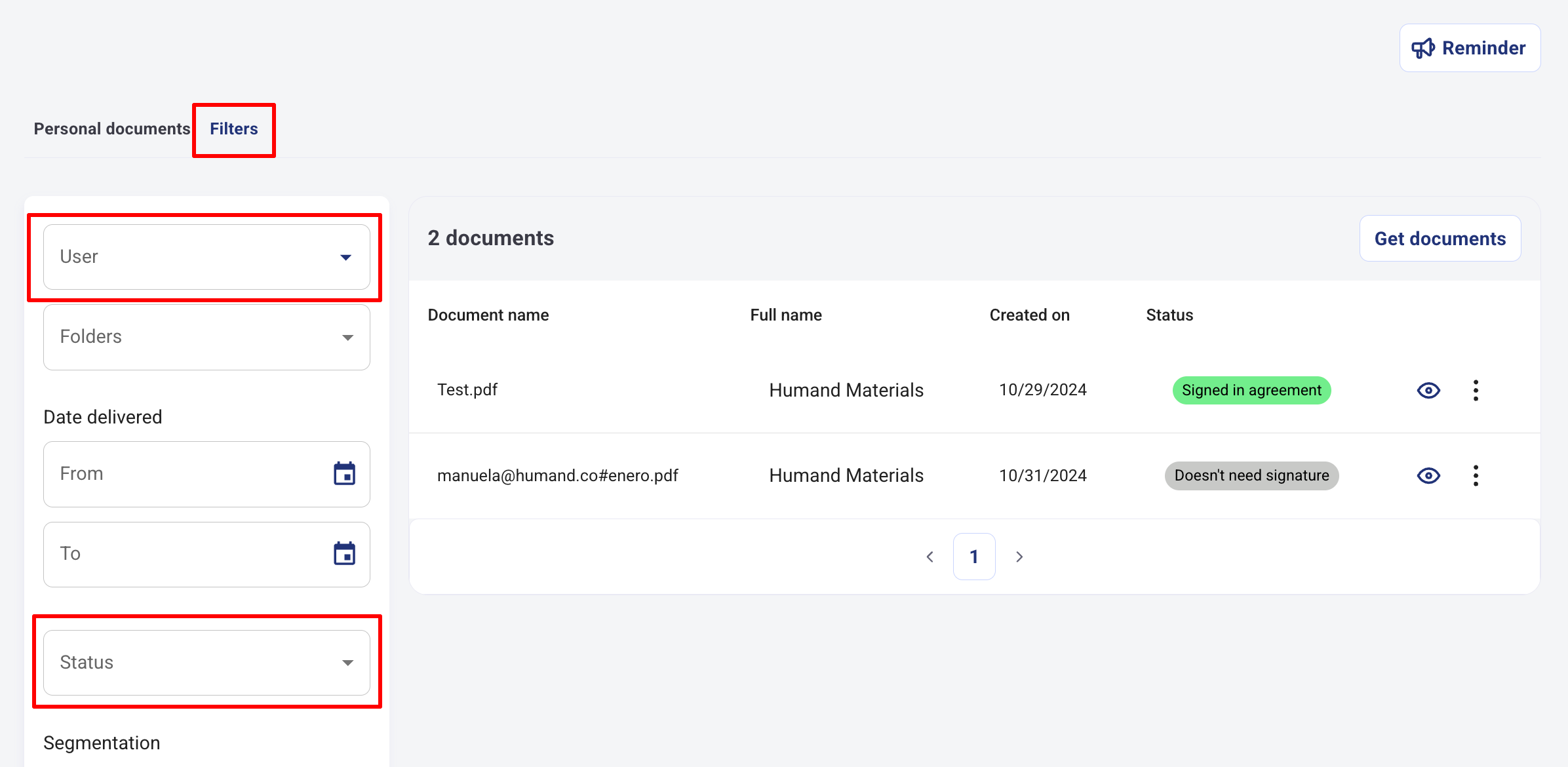 Да! В секцията „Филтри“ можете да филтрирате качените лични документи, за да покажете тези, които ви трябват.