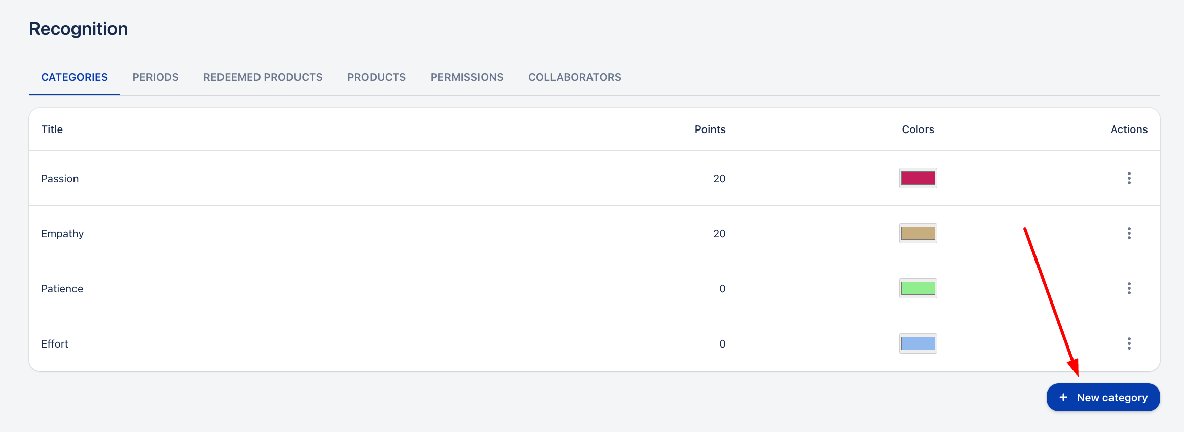 Отидете в секцията „Признание“ и кликнете върху „+ Нова категория“.