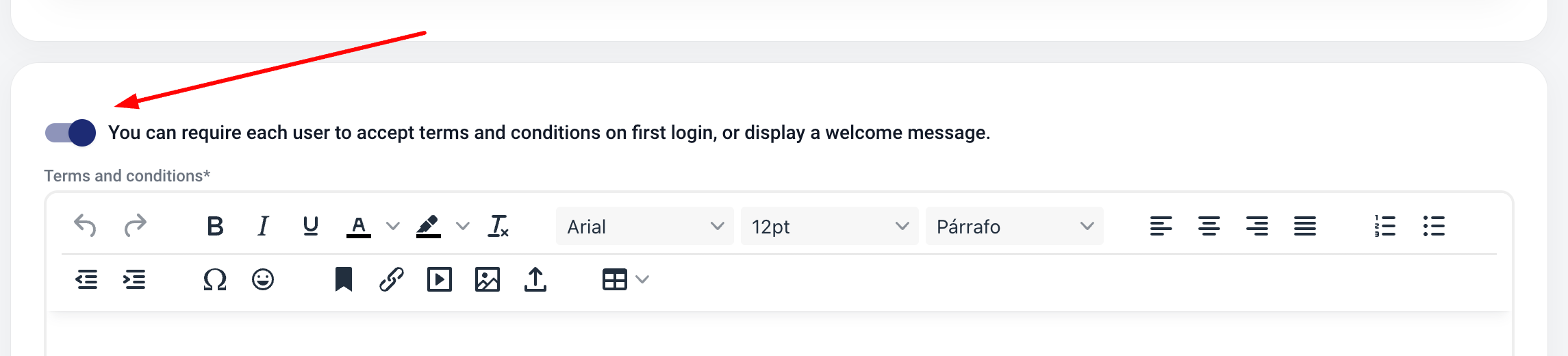 За да активирате или деактивирате условията и правилата при първо влизане, или за да създадете приветствено съобщение, трябва да следвате тези стъпки:
