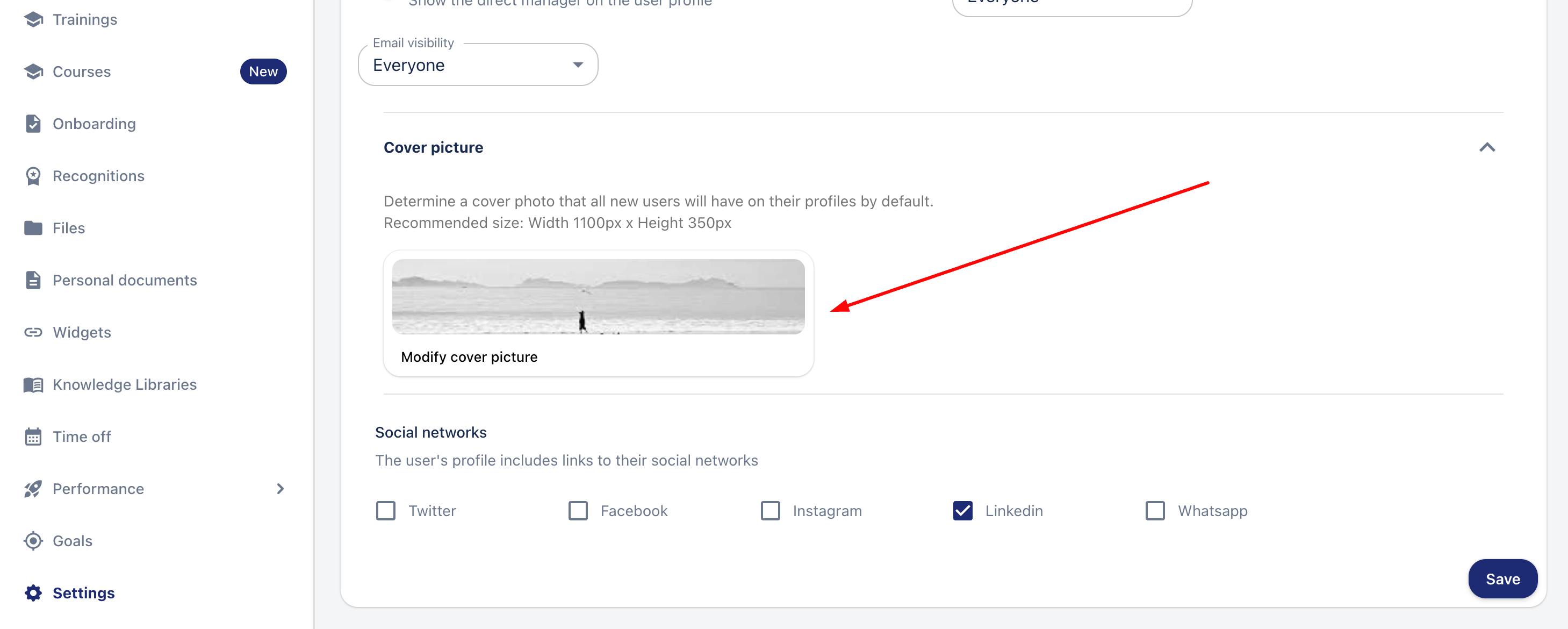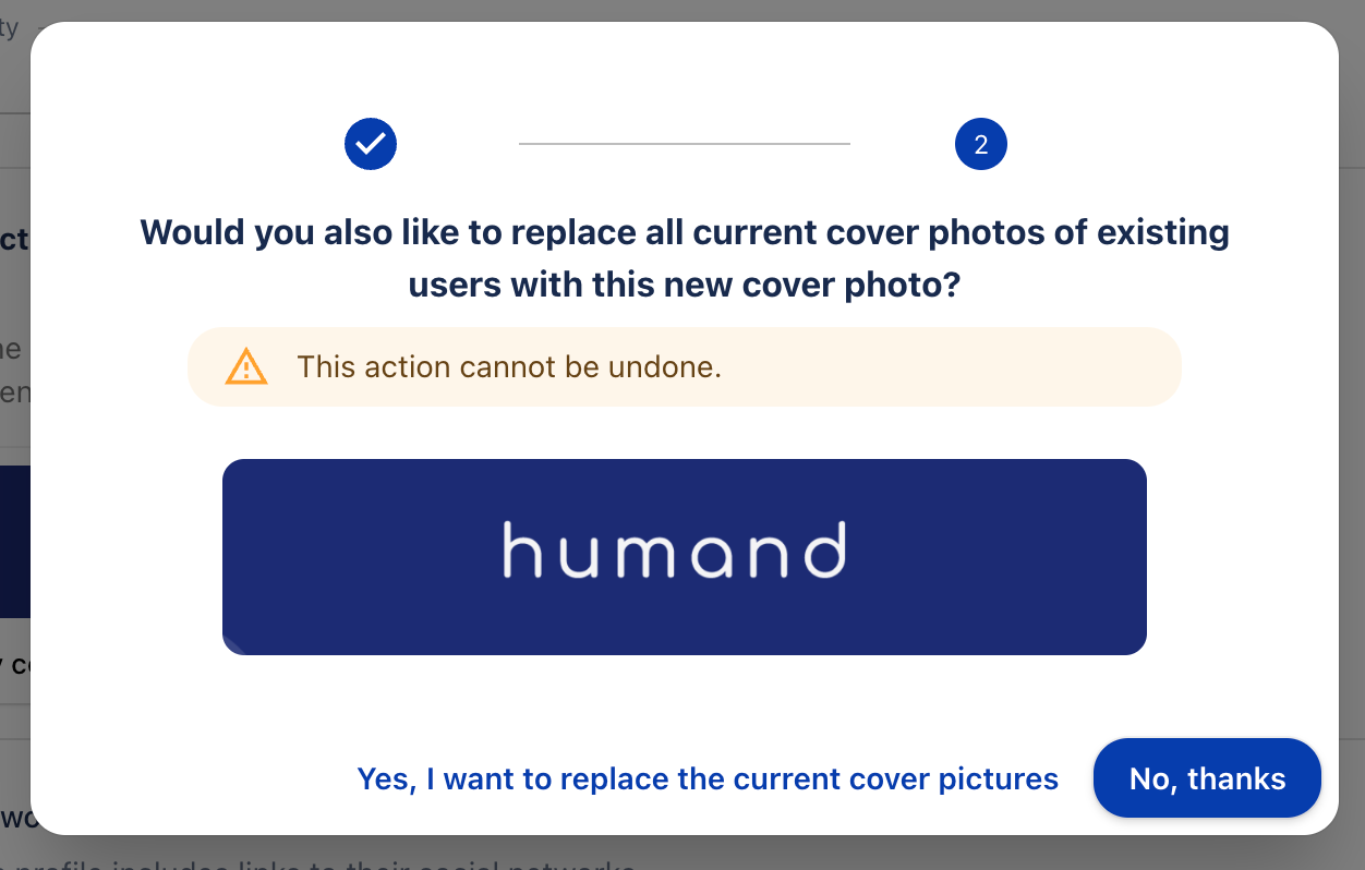 3. При промяна на изображението на корицата, новите потребители ще имат това изображение, но можете също да го промените за съществуващите сътрудници.