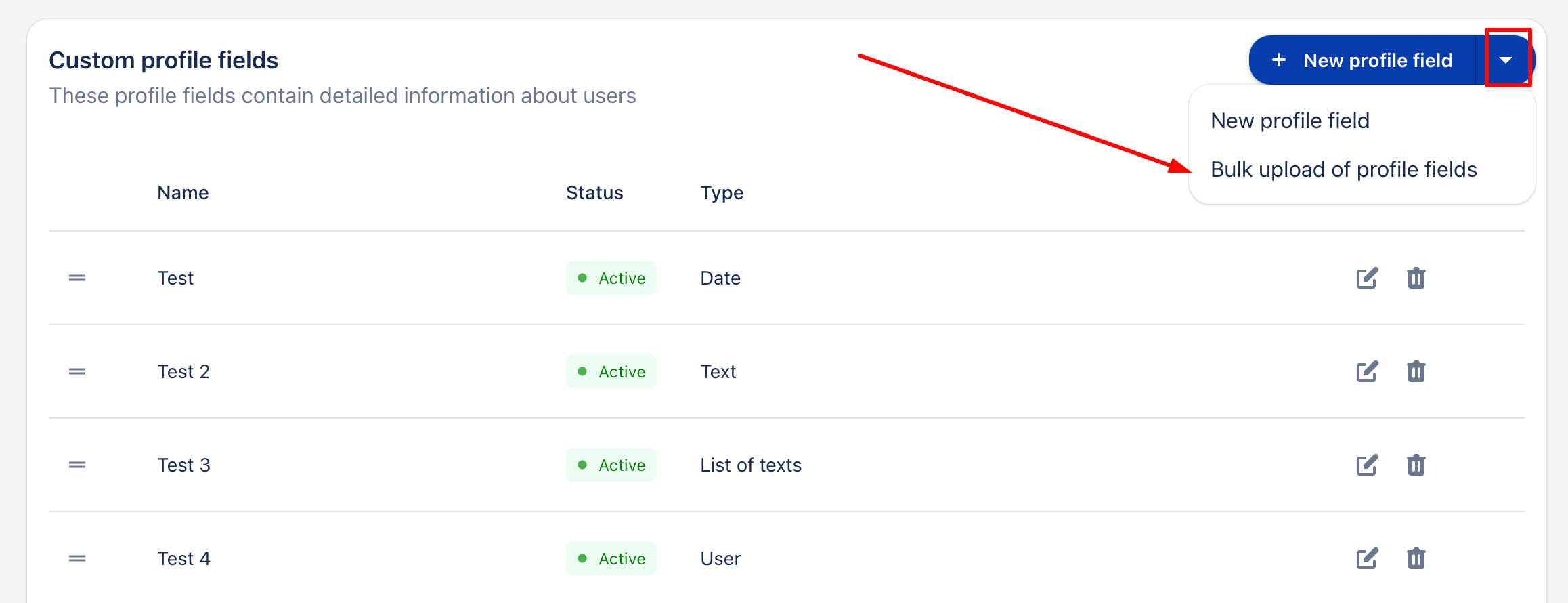 3. Изберете "Масово качване на полета на профила".