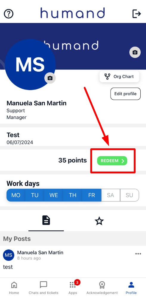 В момента е възможно да се осребряват точки само чрез приложението Humand (мобилното приложение).