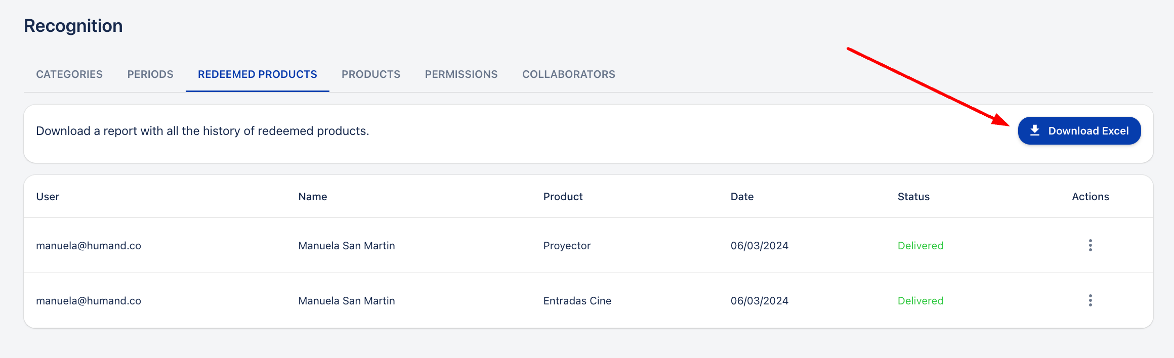 2. Отидете в секцията “Признание > Изкупени продукти”.