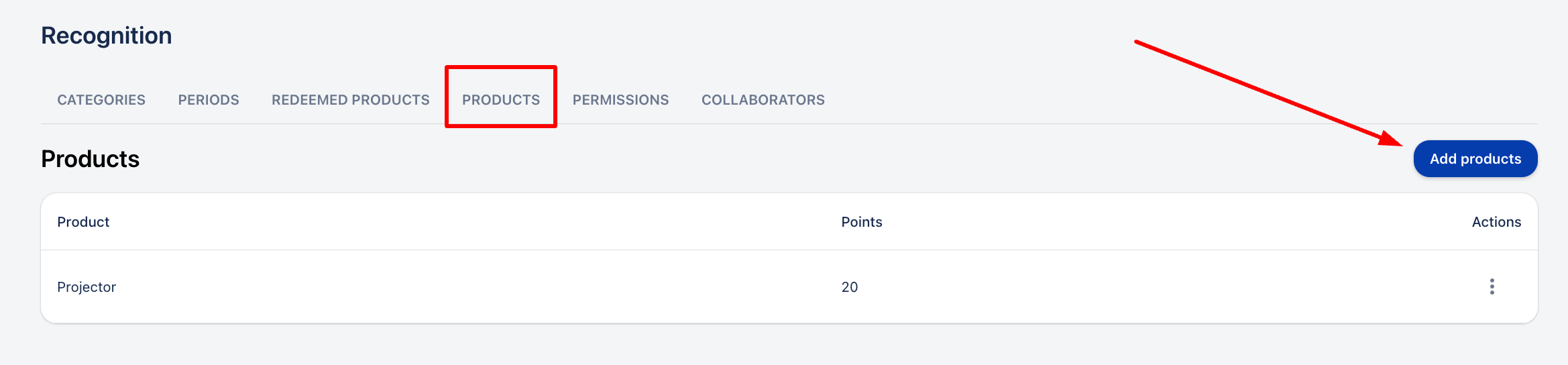 1. Отидете в секцията „Признание > Продукти“.