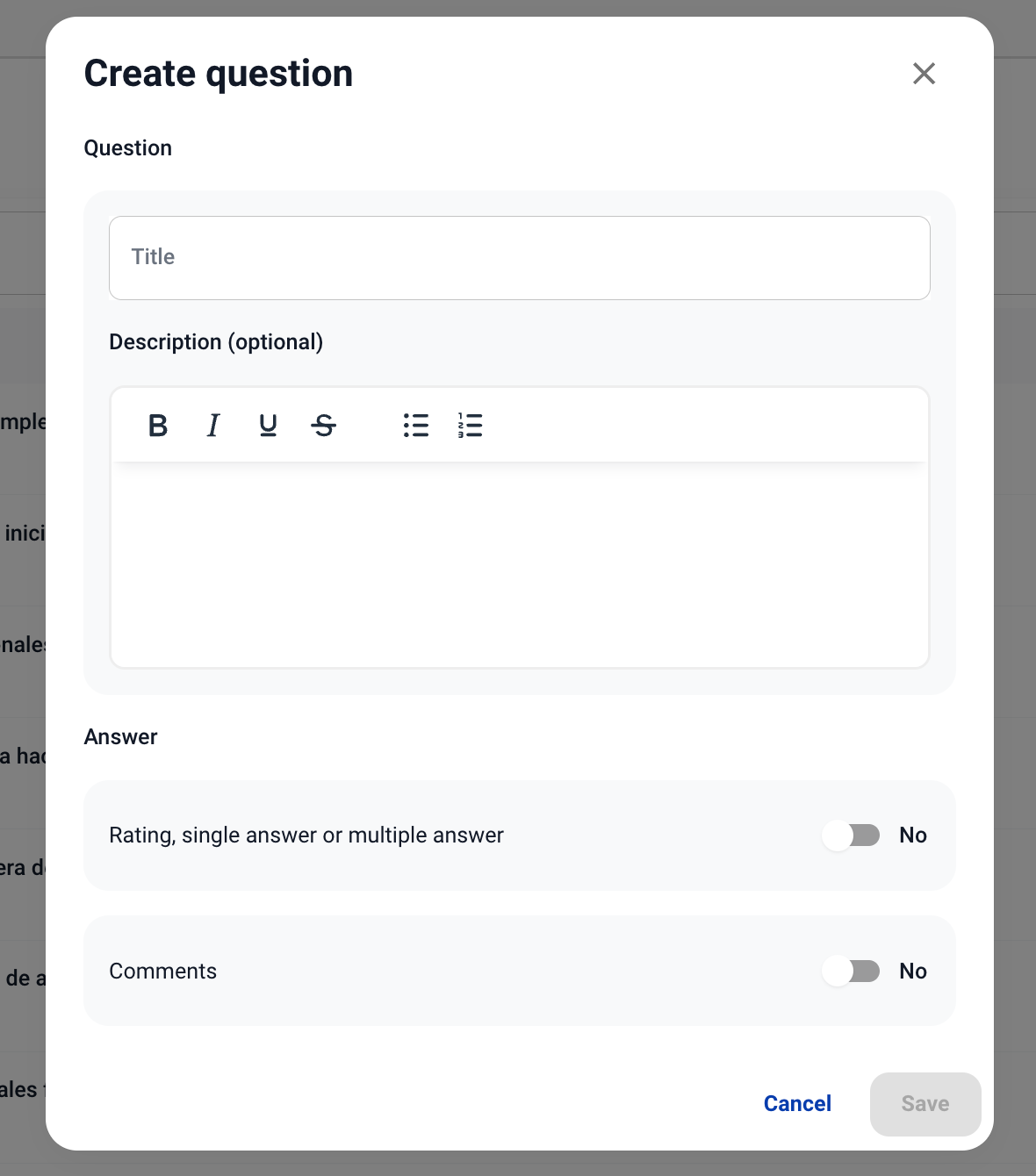 Всички отговори, които нямат опцията "Оценки, единичен отговор или множествен отговор", са текстови отговори, където всеки сътрудник може да пише.