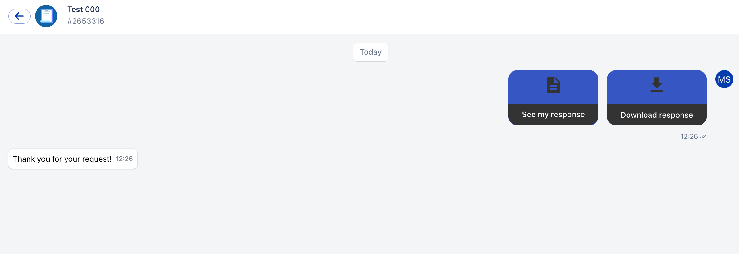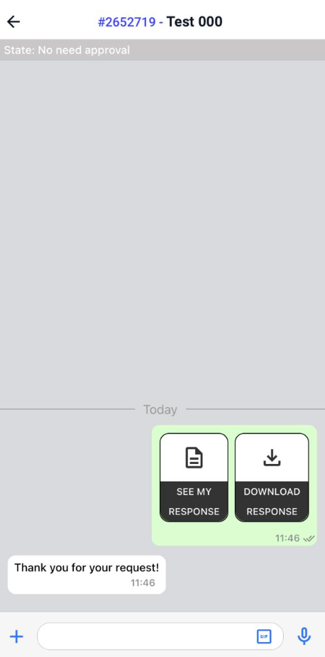 5. След като завършите формата, ако не се изисква одобрение, ще се отвори чат с екипа, отговорен за проследяването. Оттук ще можете да прегледате формата или да я изтеглите.