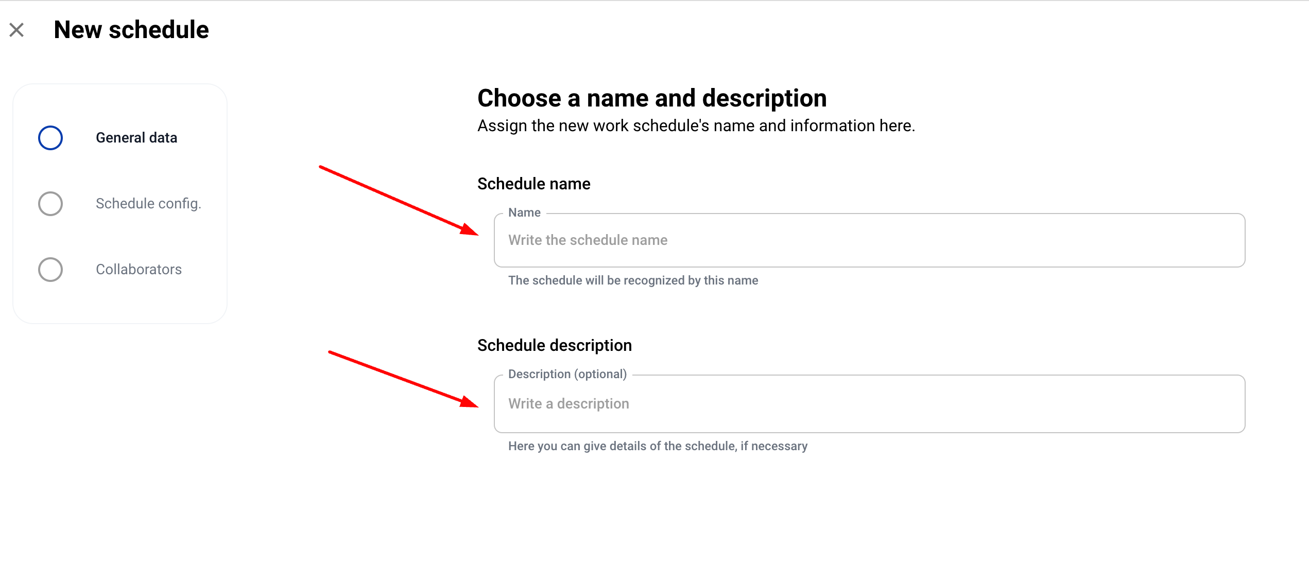 Изберете име и описание на новия работен график.