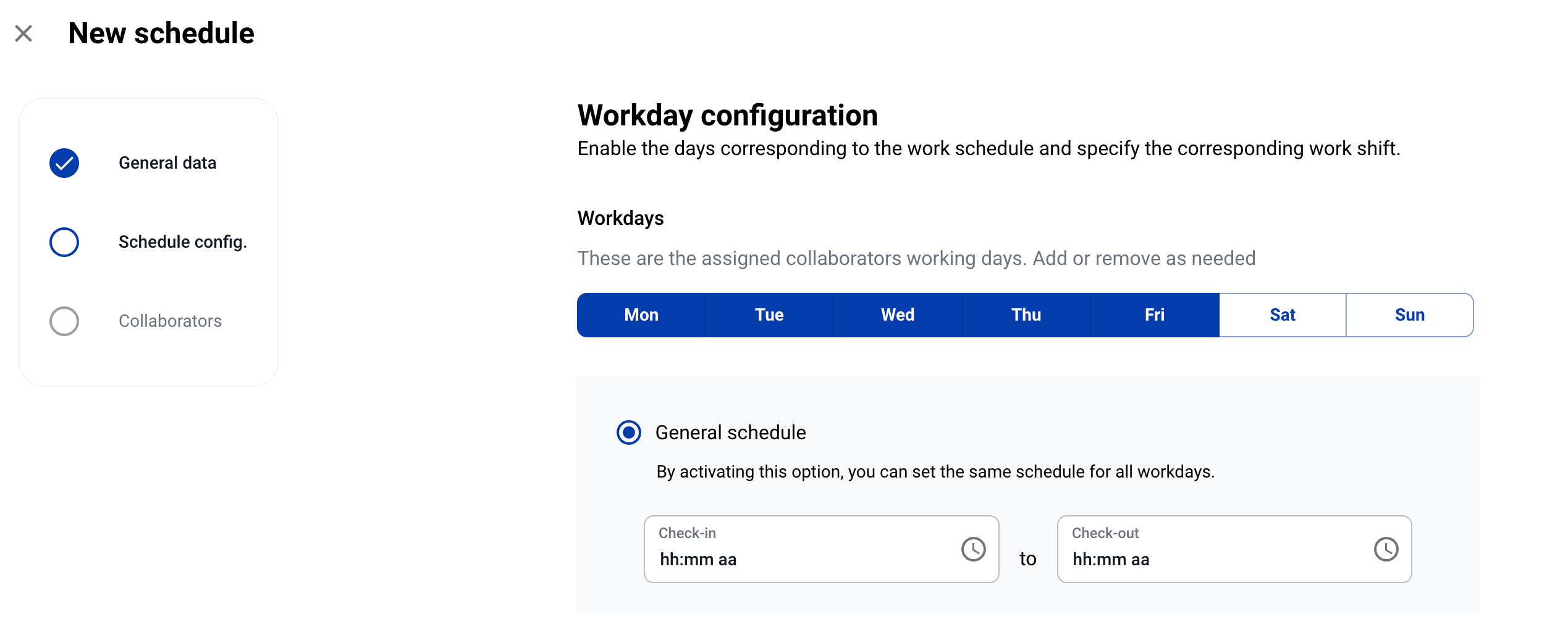 5. И това е всичко! Работните часове вече са създадени, заедно с техните работни дни.