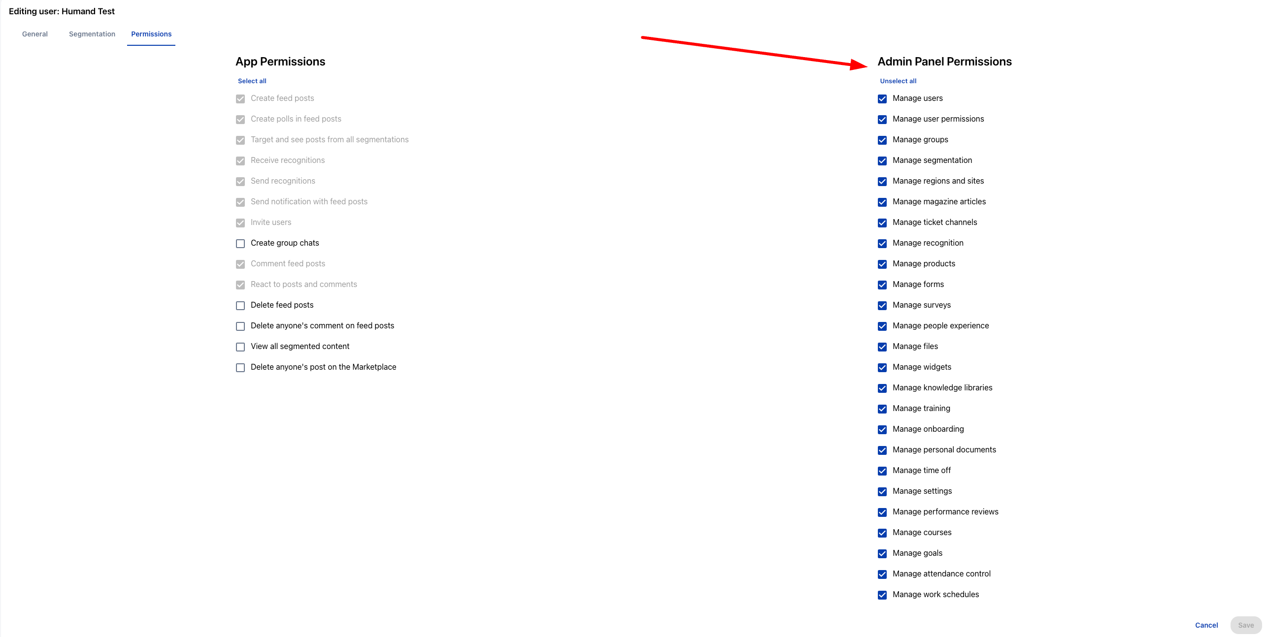 5. Сега ще можете да промените правата на потребителя от таба Права. Веднъж там, можете да изберете да зададете всички права или да изберете кои права искате потребителят да има.