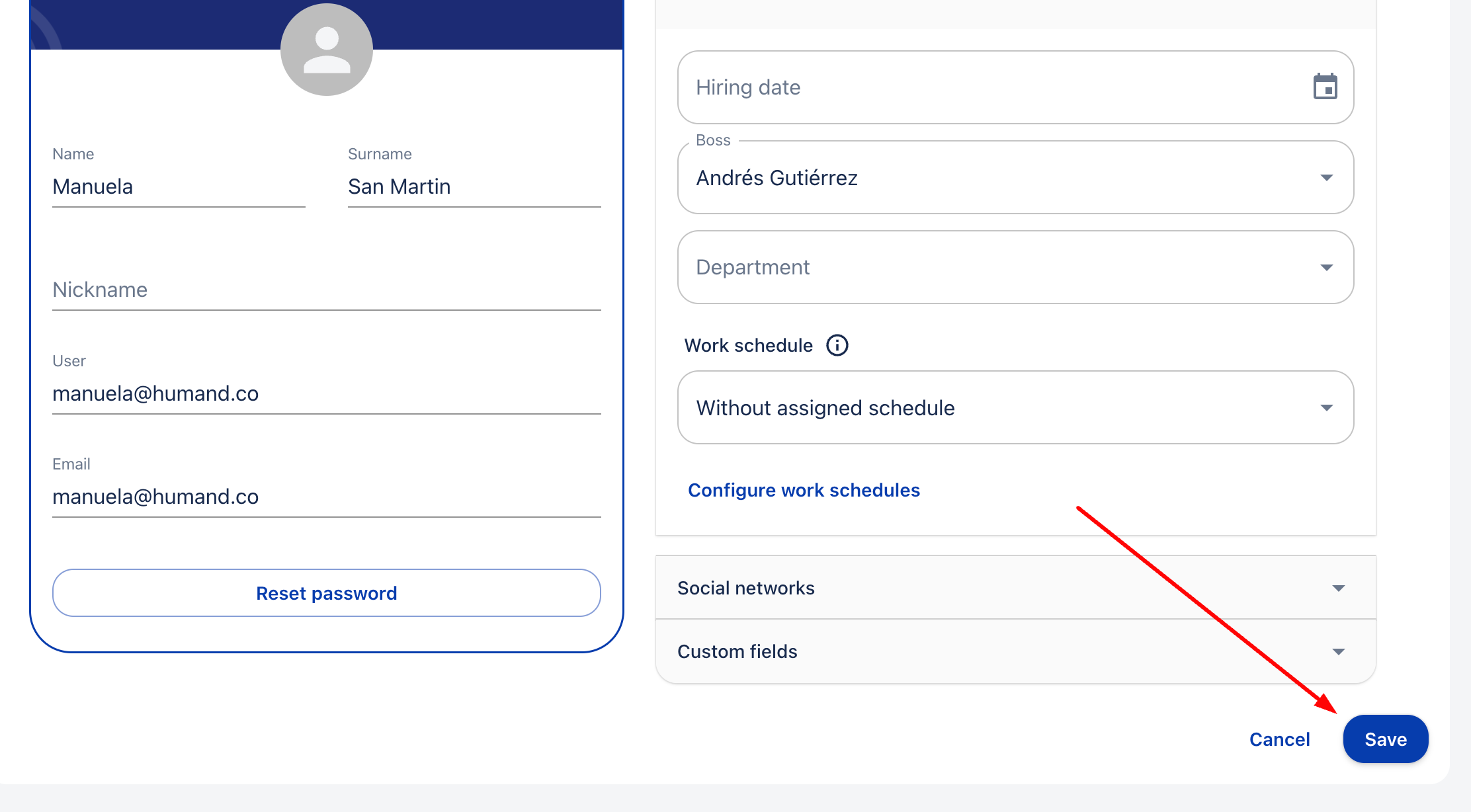 4. След това кликнете върху "Работа" и попълнете полето "Началник".
