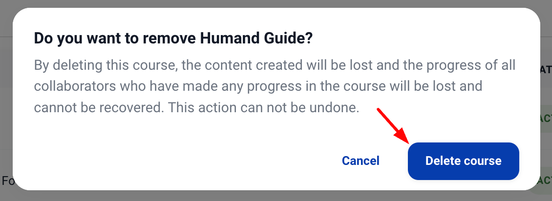 4. Накрая, кликнете върху Изтриване на курс.