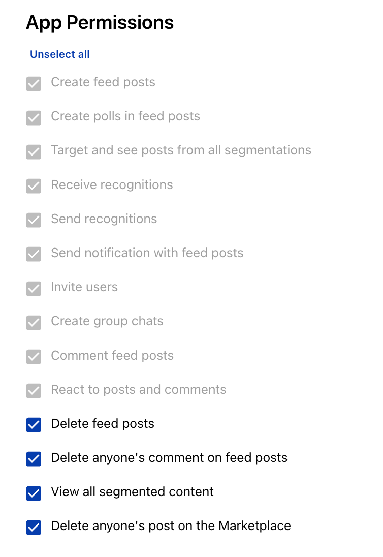По-долу споделяме с вас различните разрешения, които могат да бъдат активирани или деактивирани за Humand App или Humand Web: