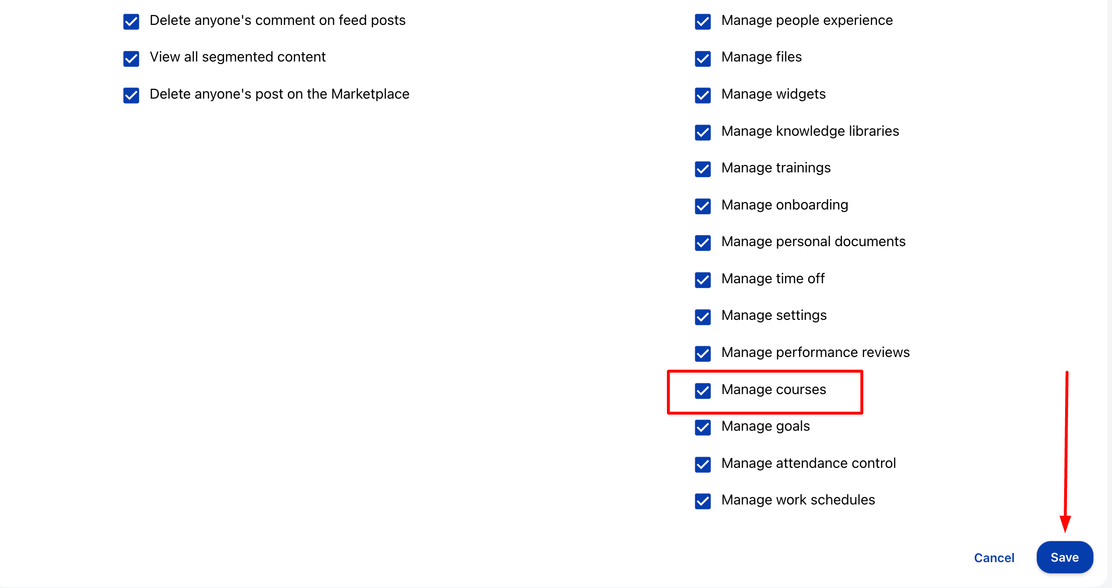 5. Отбележете разрешението "Управление на курсове" и накрая кликнете на "Запази".