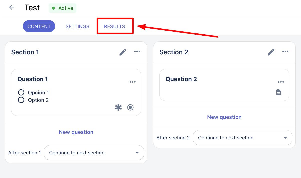 4. След като влезете в анкетата, кликнете върху Резултати.