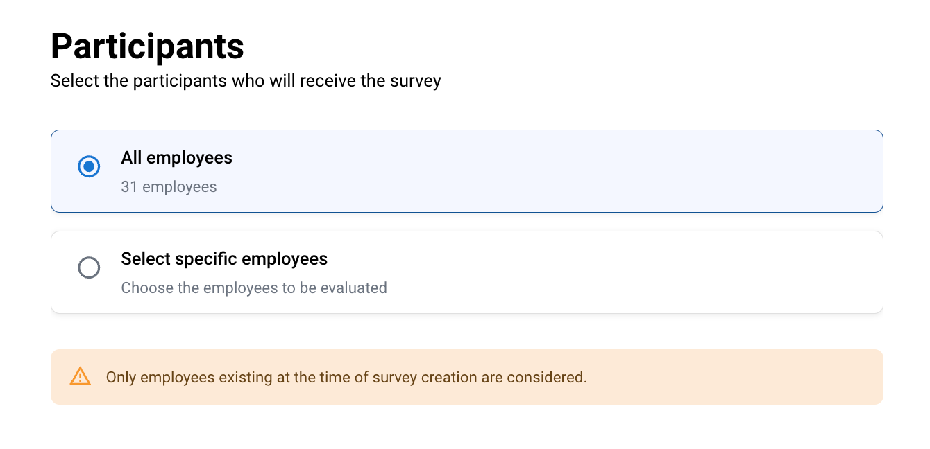 В тази секция можете да изберете сътрудниците, които искате да включите в анкетата. Това може да бъде всеки в общността или конкретни потребители или сегментации.
