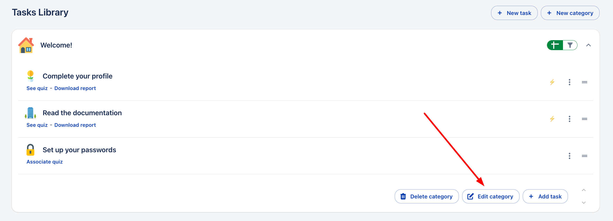 2. От секцията Onboarding отидете на категорията, която искате да редактирате.
