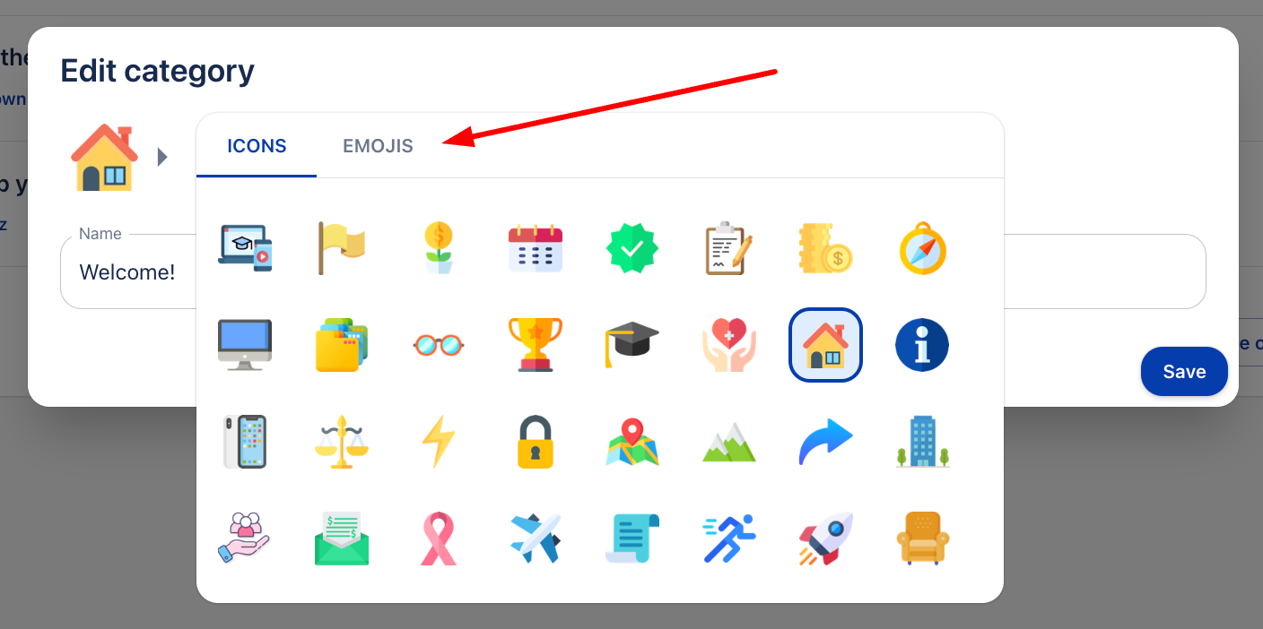 4. Като кликнете върху иконата на категорията, ще можете да изберете кое изображение или емоджи искате да се показва в категорията.