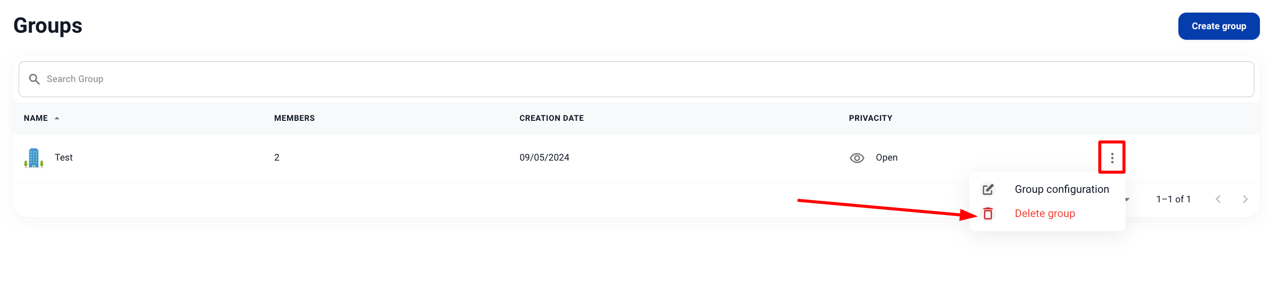 3. Кликнете върху (⁝) и изберете „Изтриване на група“.