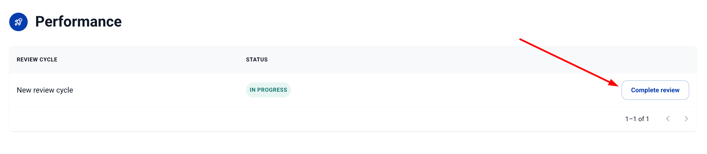3. Отидете до цикъла на оценка, който искате да влезете, и кликнете върху "Завършете прегледа".