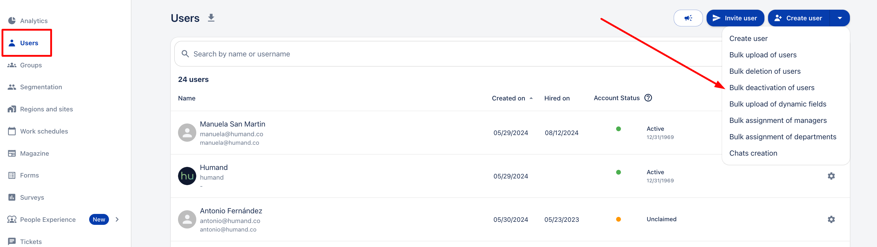 За да деактивирате няколко потребители едновременно, следвайте тези стъпки: