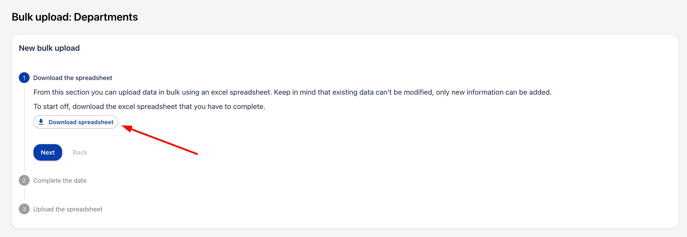 Възможно е да извършите масово качване на отдели, за да избегнете необходимостта да го правите индивидуално, един по един. За да направите това, следвайте тези стъпки:
