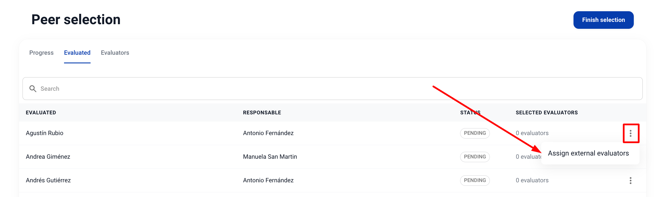 След създаването на цикъла на оценка, трябва да се извърши изборът на оценители.