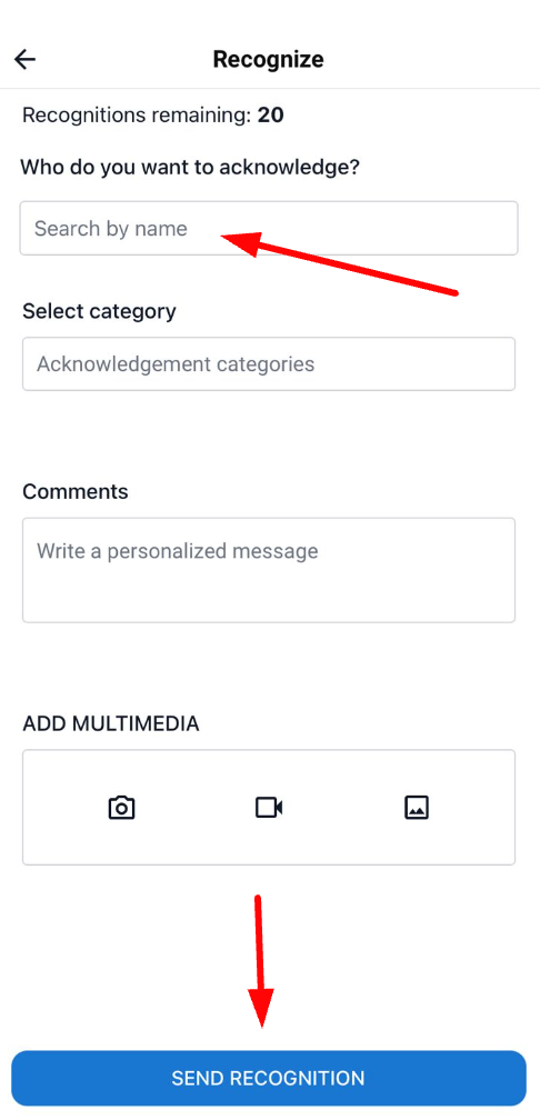 5. След като изберете потребителите, които искате да признаете, кликнете върху Изпрати признание и това е всичко!