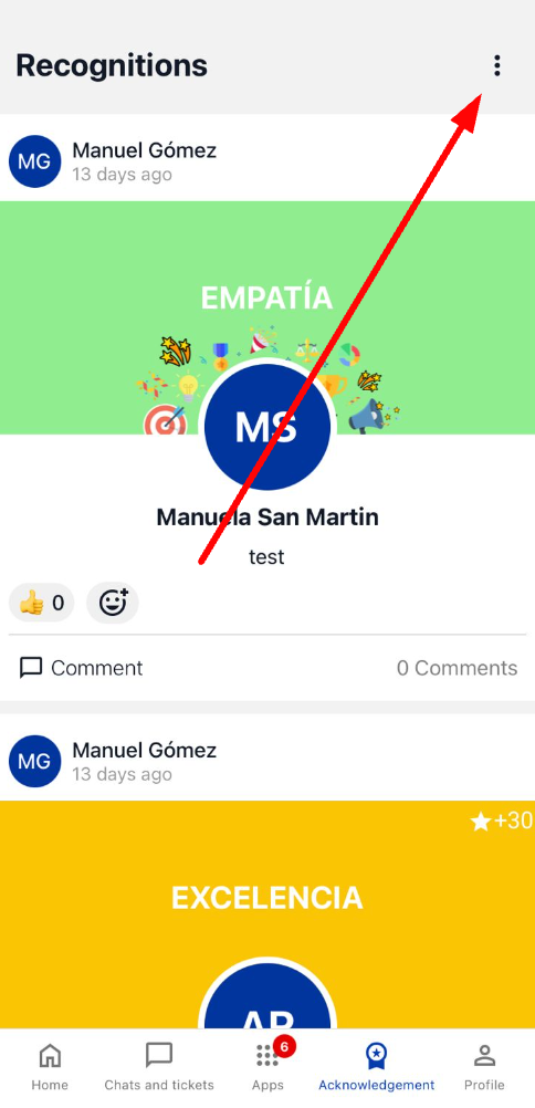 3. Натиснете бутона с три точки (⋮) и след това Дайте признание.