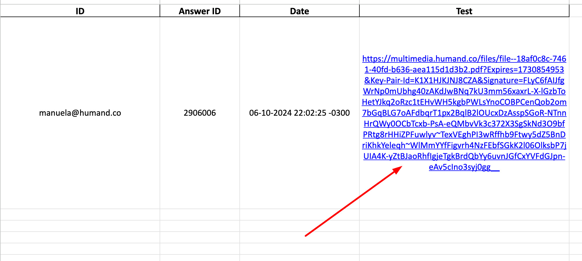5. При отваряне на отчета, файловете ще се появят като връзки в колоната на съответния въпрос. За да получите достъп до файла, трябва да кликнете върху него и ще бъдете пренасочени към него.