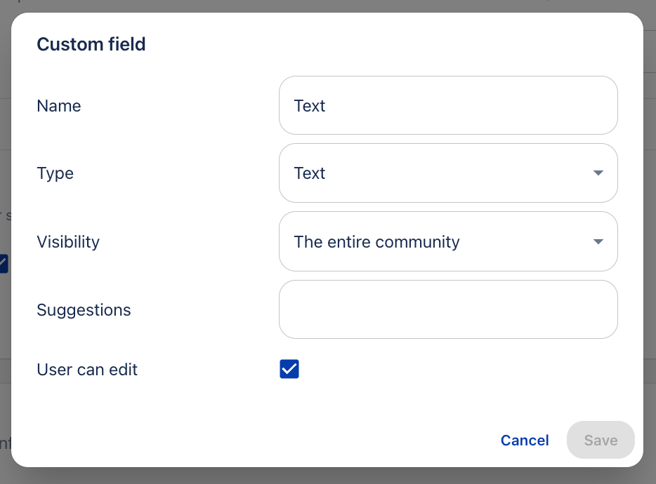 4. Там можете да редактирате името, типа, видимостта и дали е редактируемо от потребителите.