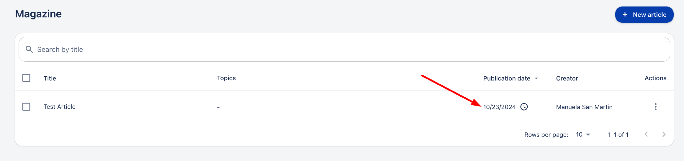 3. Кликнете върху бутона „Нова статия“.