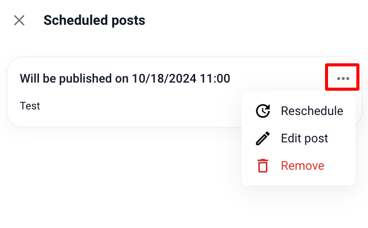 Както в секцията Feed, така и тук има възможност за редактиране и пренасрочване на планирани публикации във всяка група. По този начин ще можете да: