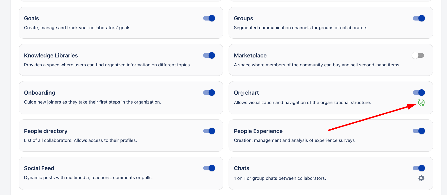 За да активирате или деактивирате Организационната диаграма в общността, следвайте стъпките по-долу: