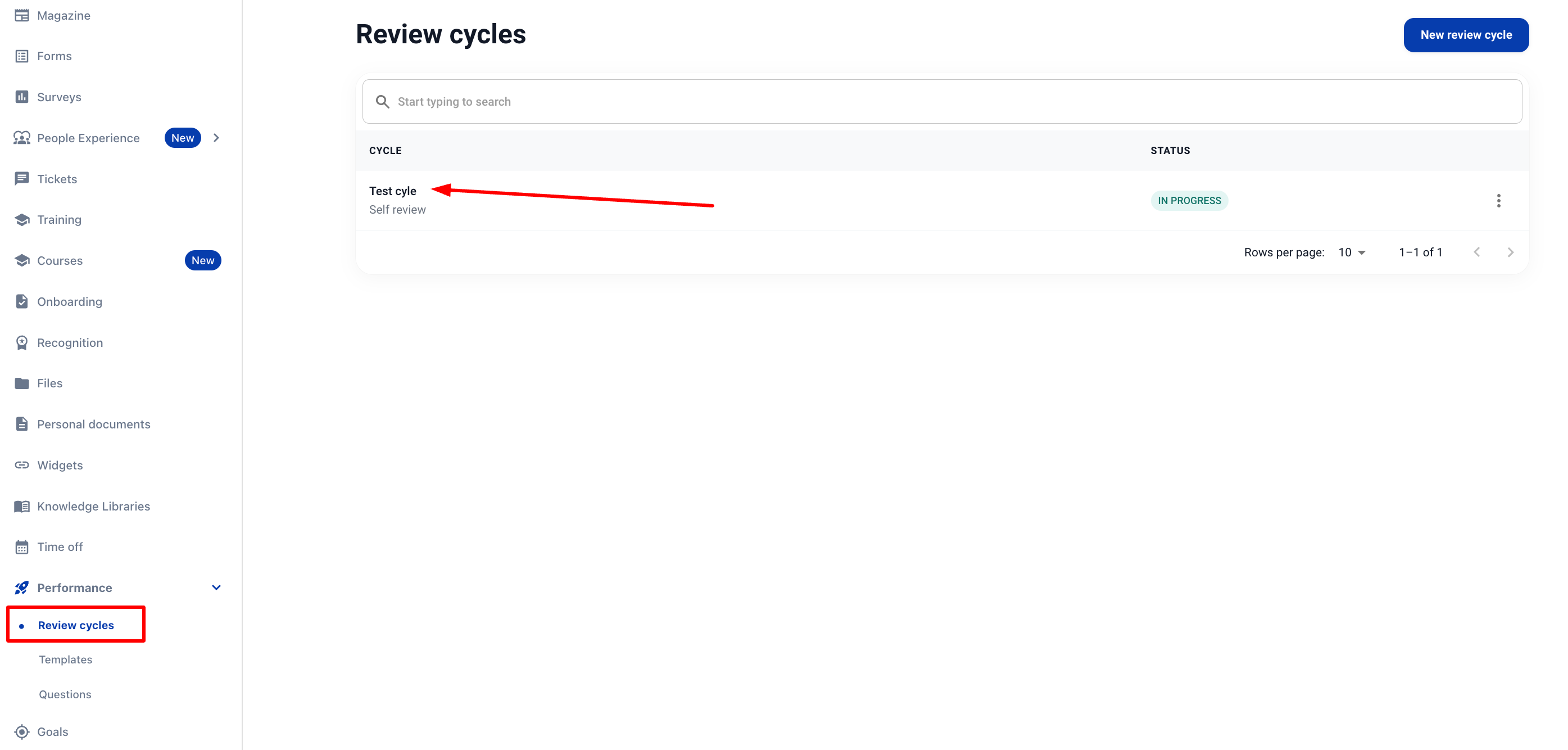 2. Отидете в секцията Performance > Review Cycles.