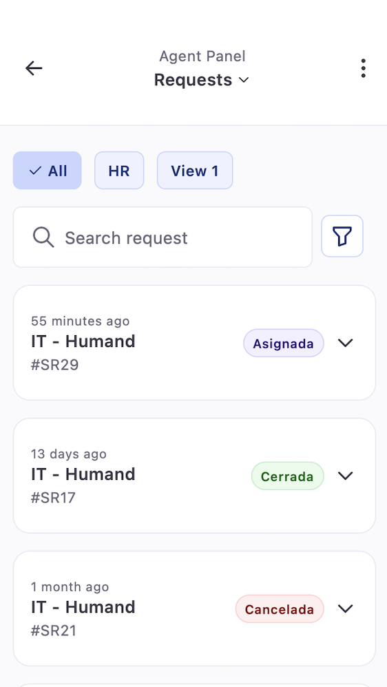 Агентите трябва да управляват заявки, инициирани от кандидатите, в модула за управление на услуги. За да управлявате заявка, следвайте стъпките по-долу: