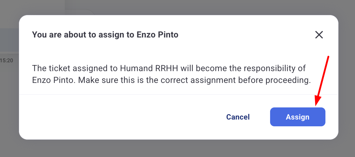 6. След като изберете новия агент, трябва да потвърдите пренасочването, като кликнете върху „Assign."