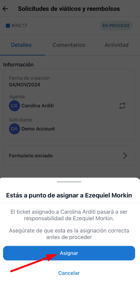 5. След като изберете новия агент, трябва да потвърдите пренасочването, като кликнете върху "Asignar".