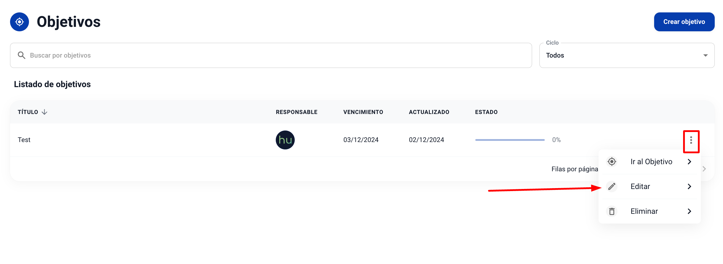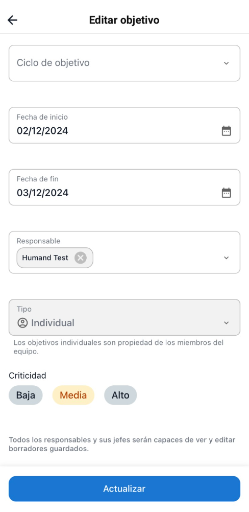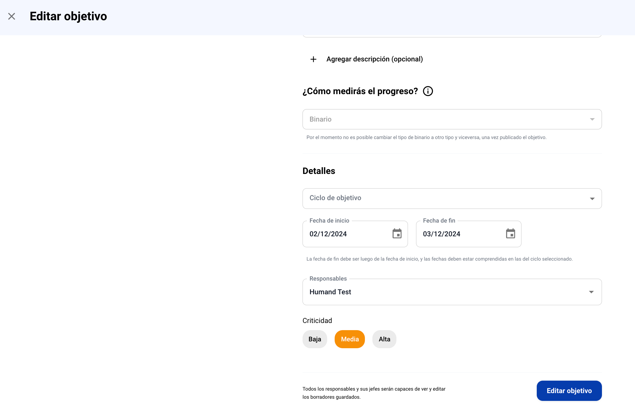 Ето стъпките, в зависимост от системата, за да редактирате вече създадена цел в Humand: